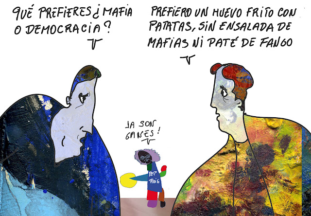 "Sorpresa"- Pep Roig / Collage de roba i pintura acrílica sobre cartró pedra- 70x63 / Inca, Juny 2025